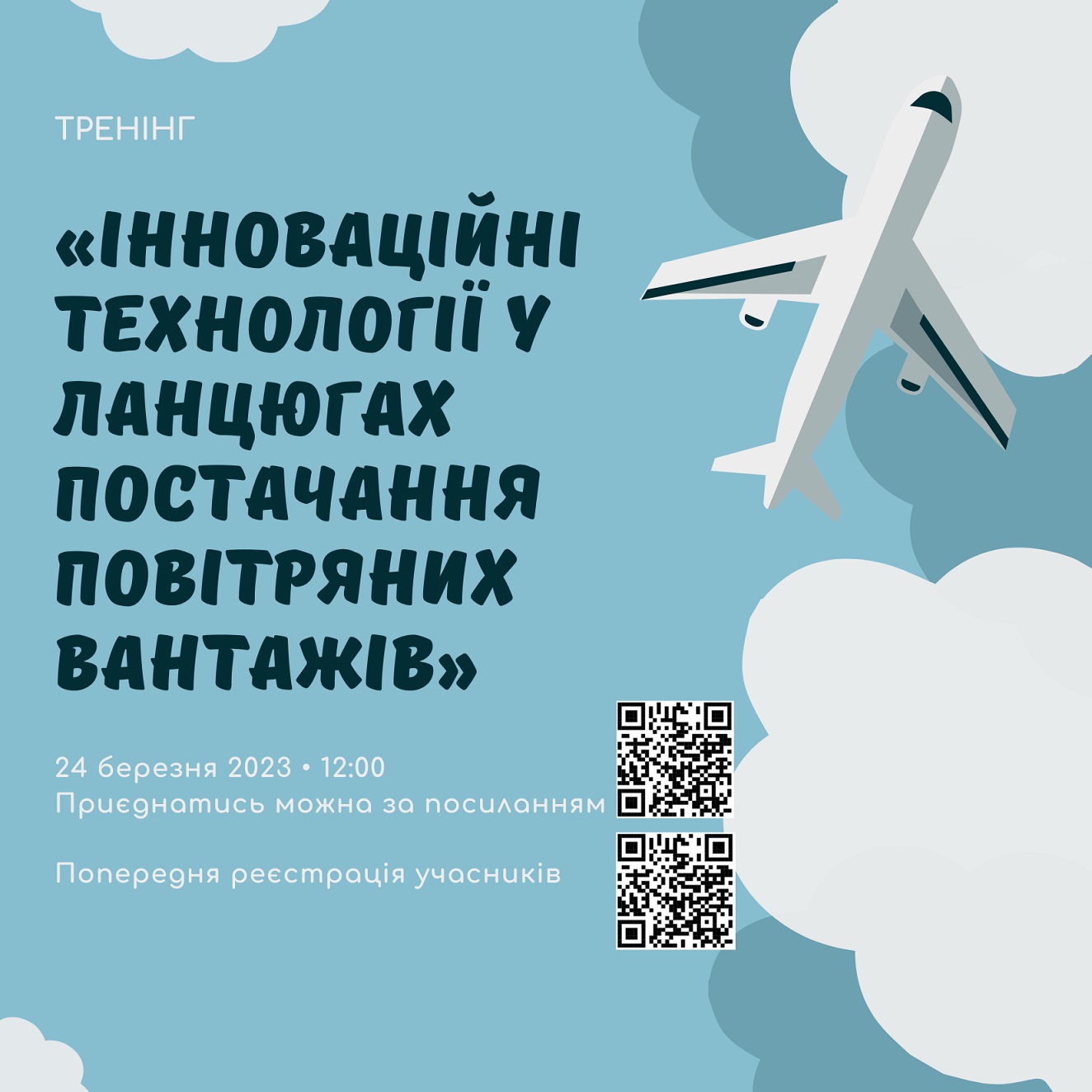 24.03.2023 року об 11.00 відбудеться тренінг «Інноваційні технології у ланцюгах постачання повітряних вантажів»