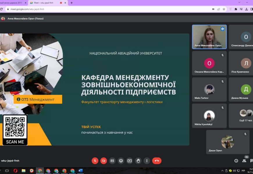 Під час проведення заходу майбутні потенційні абітурієнти були ознайомлені з історією та основними напрямами діяльності кафедри, освітніми програмами, які пропонуються кафедрою, а саме “Менеджмент зовнішньоекономічної діяльності”, “Менеджмент організацій і адміністрування (за видами економічної діяльності)”, “Менеджмент авіакомпаній та аеропортів”.