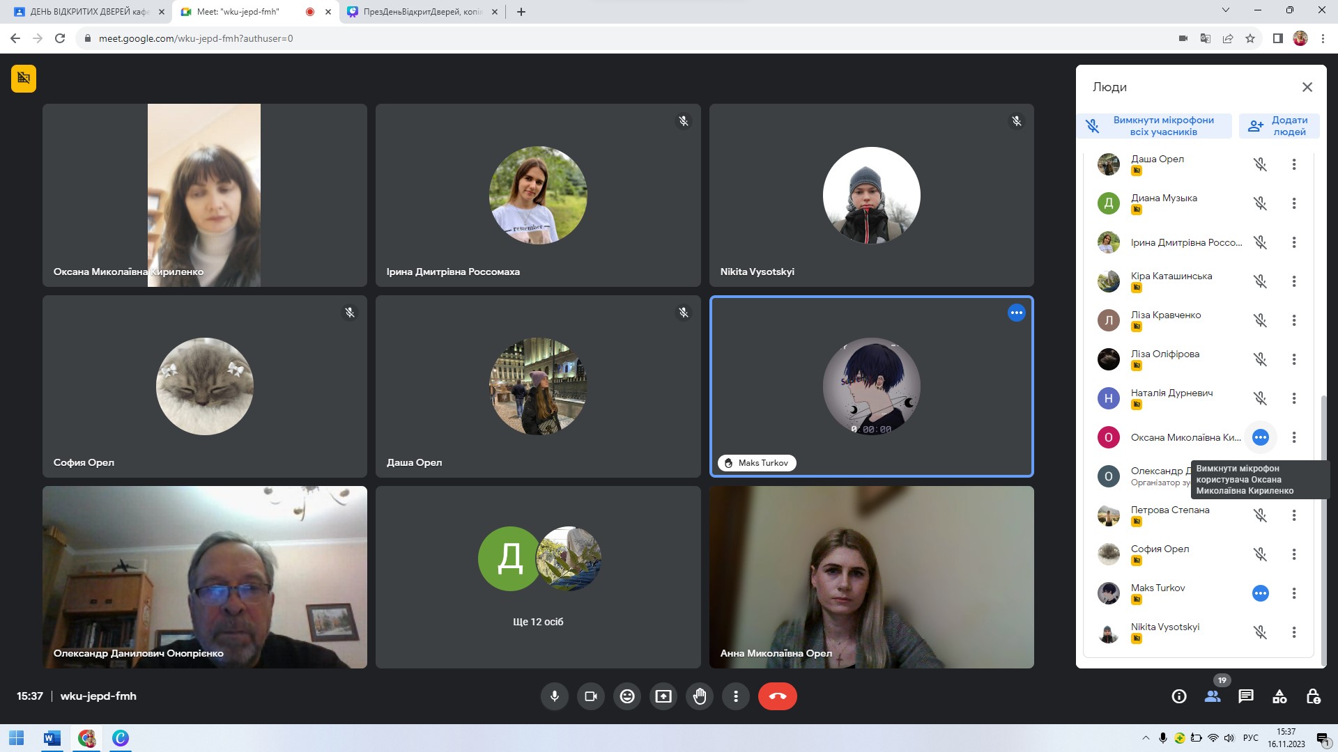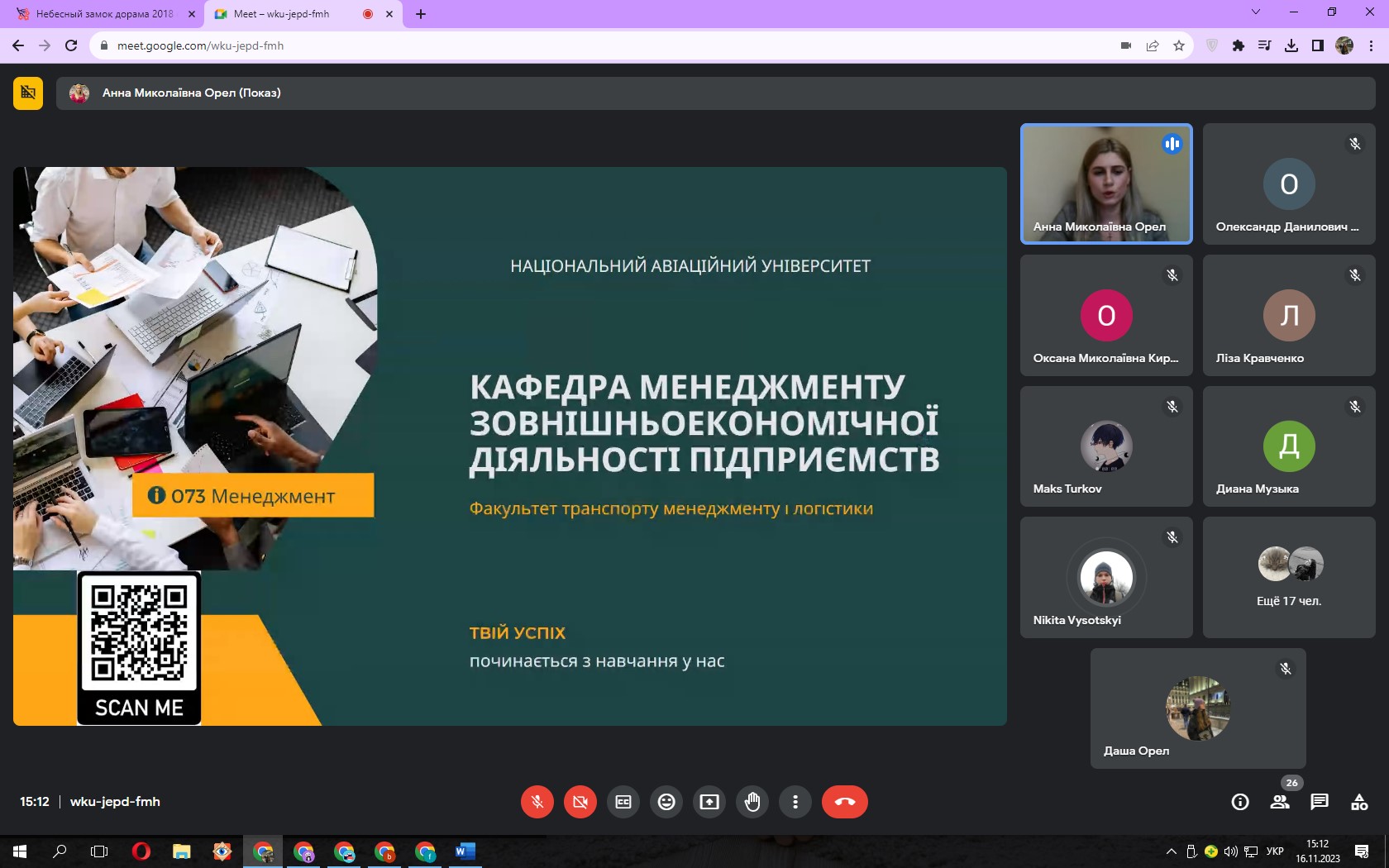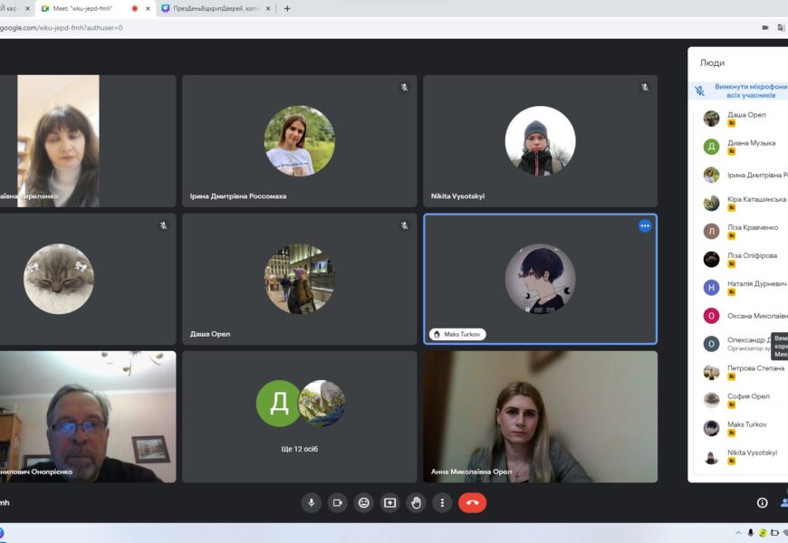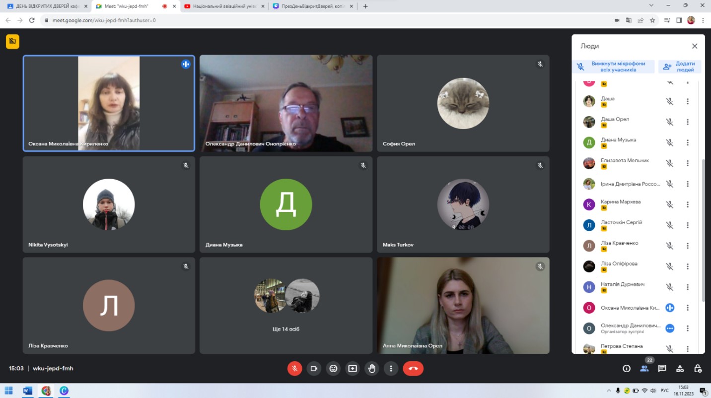 16 листопада 2023 року в рамках заходів з популяризації спеціальності та освітніх програм кафедрою менеджменту зовнішньоекономічної діяльності підприємств було проведено День відкритих дверей для учнів 10-11 класів у форматі онлайн зустрічі. До заходу долучилися учні ліцею № 22 м. Миколаїв, КЗФПО “Новобузький фаховий коледж”, ліцею «Інтелект» м. Знам’янка, Броварської ЗОСШ, ліцеїв м. Бровари.