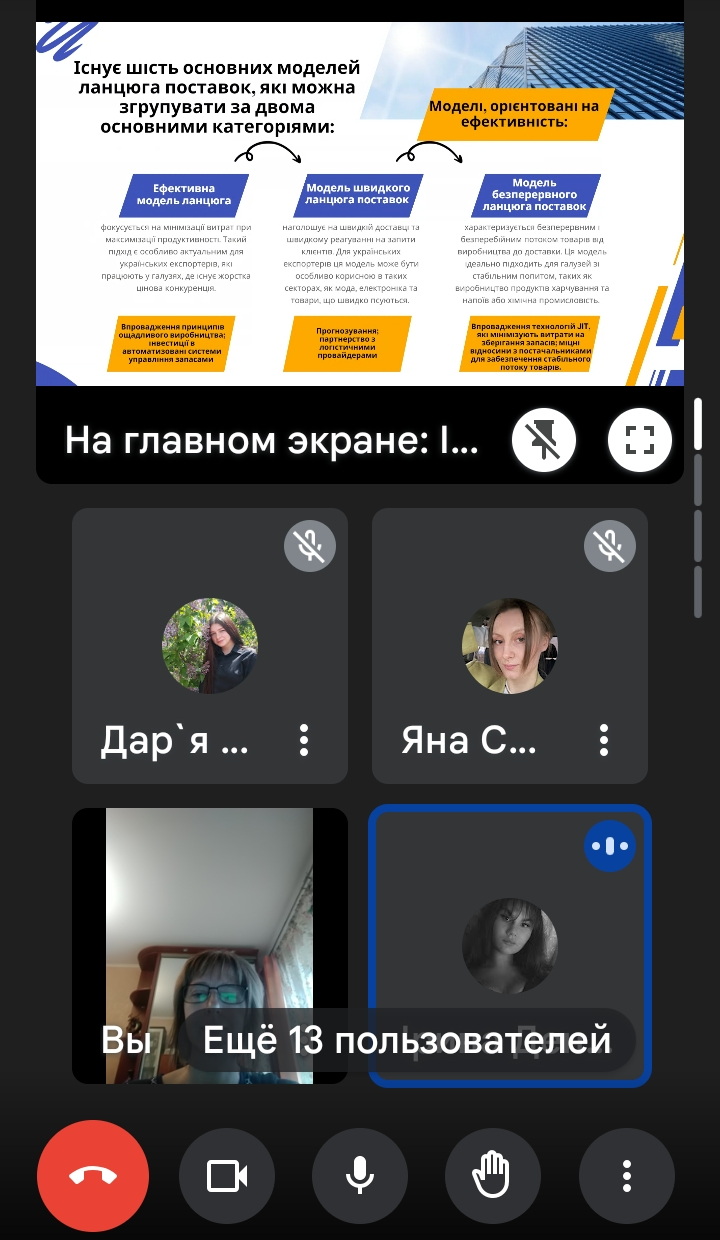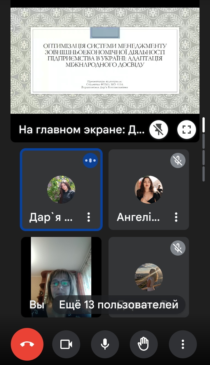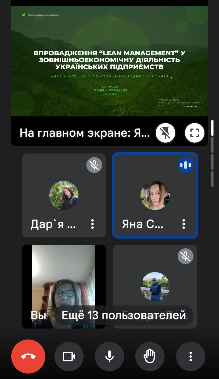 9 жовтня 2024 року кафедрою менеджменту зовнішньоекономічної діяльності підприємств було проведено круглий стіл на тему: “Оптимізація системи менеджменту зовнішньоекономічної діяльності підприємств в Україні: адаптація міжнародного досвіду”. В круглому столі взяли участь викладачі кафедри та здобувачі вищої освіти ОПП “Менеджмент зовнішньоекономічної діяльності” та “Менеджмент організацій і адміністрування (за видами економічної діяльності)”, які підготували цікаві та змістовні доповіді.