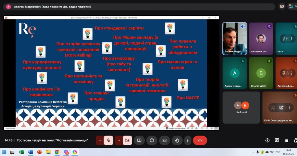 Спікером вебінару був Андрій Магалецький, засновник і керуючий партнер компанії Restetika, Президент Асоціації кулінарів України, організатор благодійних гастровечерь.