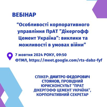Вебінар на тему: “Особливості корпоративного управління ПрАТ “Дікергофф Цемент Україна”: виклики та можливості в умовах війни”