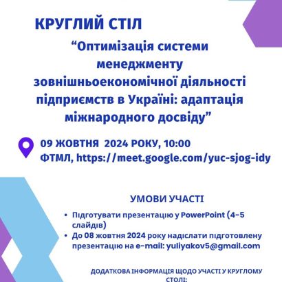 Круглий стіл на тему: “Оптимізація системи менеджменту зовнішньоекономічної діяльності підприємств в Україні: адаптація міжнародного досвіду”